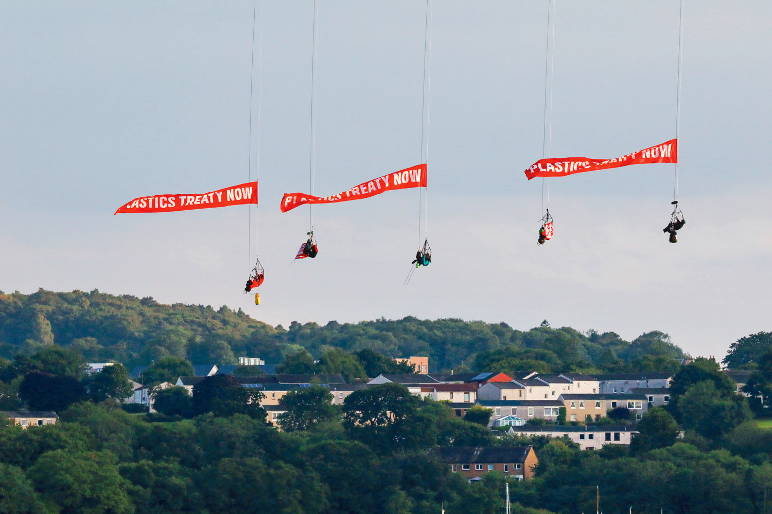 Gesperrt: Aktive von Greenpeace seilten sich von der Forth Autobrücke ab, um die Durchfahrt eines Tankers voll mit US-Frackinggas zu verhindern. Der Tanker gehört dem Milliardär Jim Ratcliffe – wie auch die Firma Ineos, der größte Hersteller von Plastik im Vereinigten Königreich. Ratcliffe ist ein Gegner eines globalen Abkommens, das die Verschmutzung der Welt mit Plastik begrenzen soll. Verhandlungen über ein solches Abkommen sind im August vorerst gescheitert. Unterzeichnen Sie die Petition für ein starkes Plastikabkommen: hier