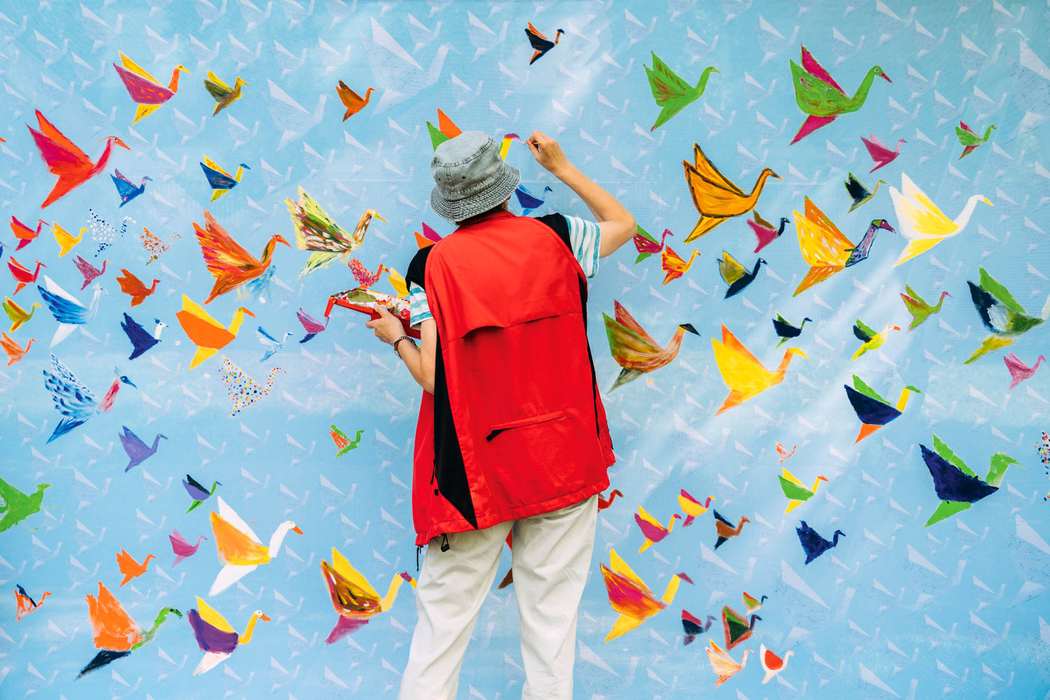 Nie wieder: Zum 80. Jahrestag der Atombombenabwürfe auf die japanische Städte Hiroshima und Nagasaki luden Greenpeace Aktive in ganz Deutschland zum Gedenken. In Hamburg entstand dabei eine Friedensbotschaft in Form eines 20 Meter langen Banners mit 1000 Kranichen. Hunderte Menschen kamen zum Millerntor Stadion, um sie auszumalen. Das Motiv hatten die Street Art-Künstler Daniel Ebert und Andreas Demko für Greenpeace entworfen, angelehnt an die Geschichte des japanischen Mädchens Sadako Sasaki.