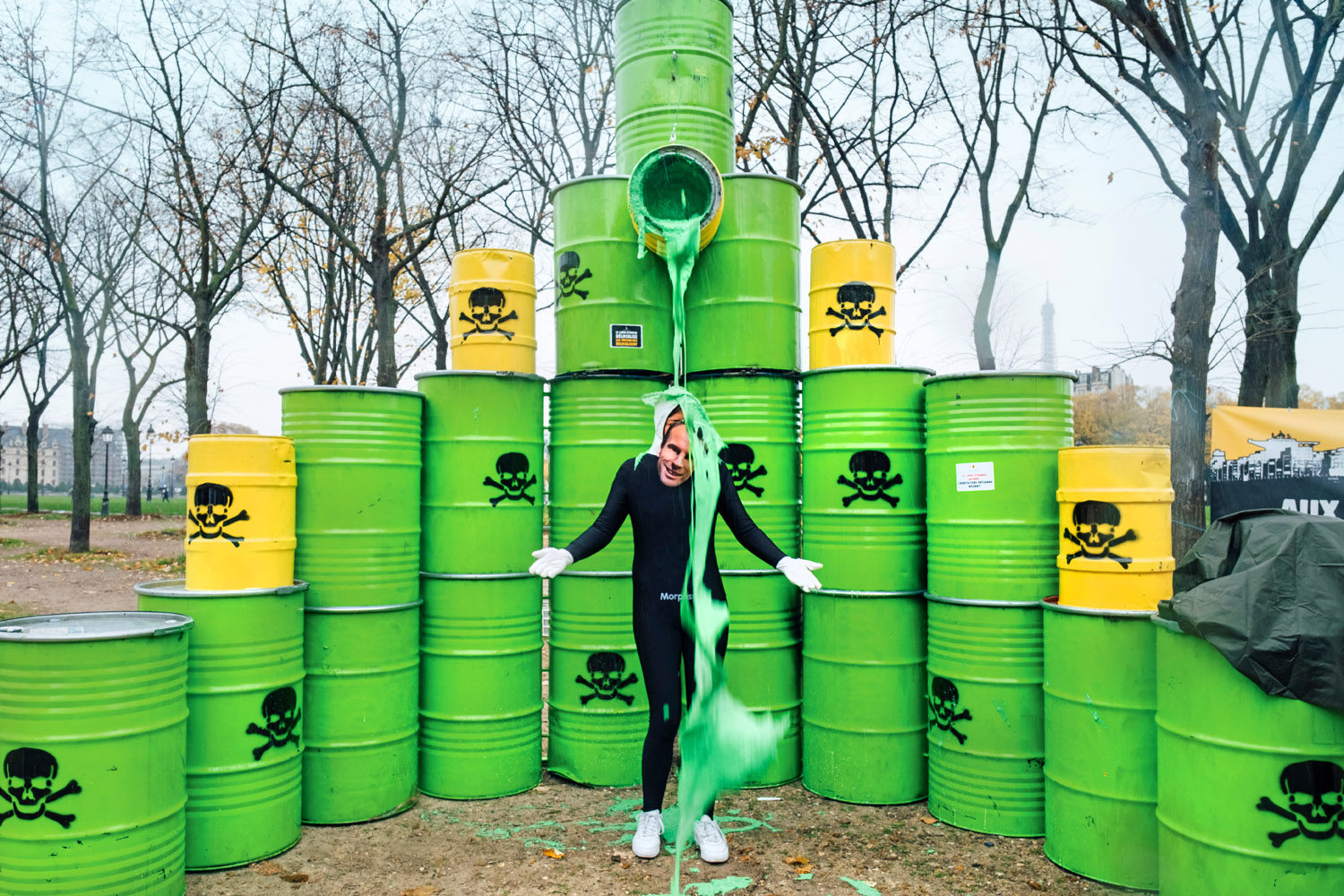 Eine Pyramide aus Fässern, aus denen giftig-grüne Pestizide schwappen – mitten in Paris würde das wohl niemanden kalt lassen. Dabei ist das, was Aktive von Greenpeace und anderen Bündnissen in der französischen Hauptstadt simulierten, anderswo traurige Realität: Weltweit werden Ökosysteme mit Pestiziden vergiftet – und wenn das EU-Mercosur-Handelsabkommen zwischen der Europäischen Union und südamerikanischen Ländern in Kraft tritt, kommen mehr belastete Nahrungsmittel auch zu uns. Die Protestierenden in Paris forderten daher von Frankreichs Präsident Macron, das EU-Mercosur-Abkommen nicht zu ratifizieren.