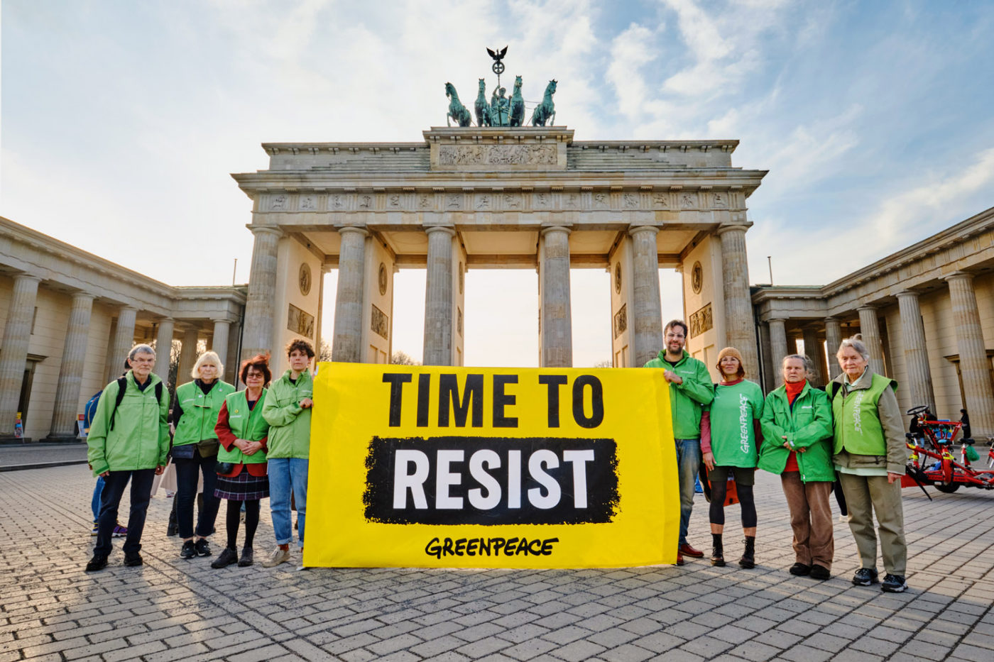 Bild oben: Weltweit zeigten sich Aktive von Greenpeace nach dem Urteil solidarisch – wie hier in Berlin.