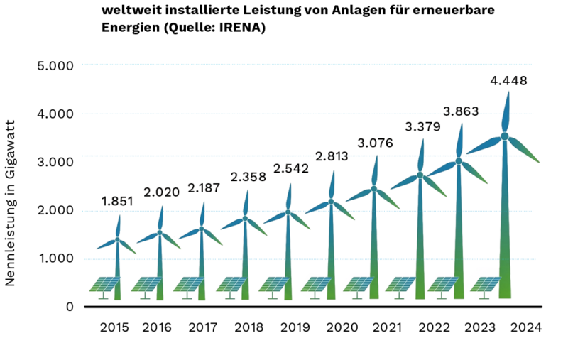 Aber es gibt noch einen weiteren Punkt: Erneuerbare sind schlicht wirtschaftlicher. Neue Wind- und Solarparks lieferten 2024 Strom weltweit meist 40 bis 50 Prozent günstiger als neue fossile Kraftwerke. Und über 90 Prozent aller neuen Anlagen für Erneuerbare waren billiger als jede fossile Alternative. Das geht aus einer Studie der Internationalen Agentur für erneuerbare Energien (Irena) aus dem vergangenen Jahr hervor.